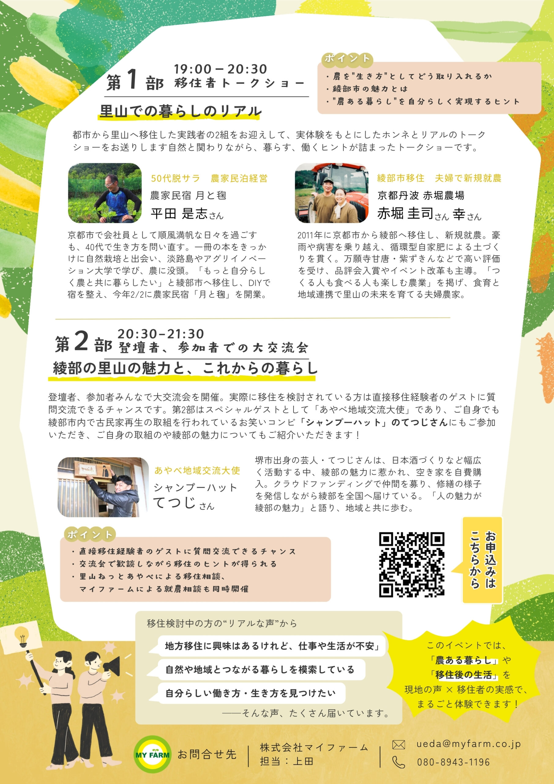 里山ねっとあやべによる移住相談、マイファームによる就農相談も同時開催!